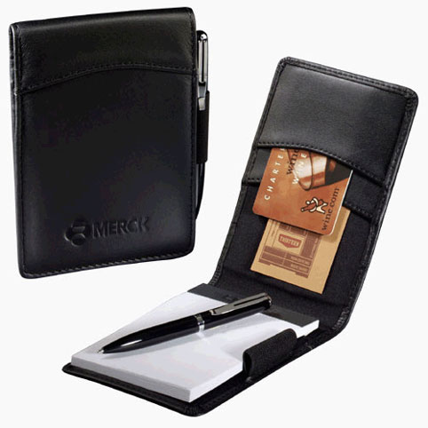 Item Info: Inside has pockets for business cards. Elastic pen loop (no pen included). A 3" x 4.75" unlined writing pad included.